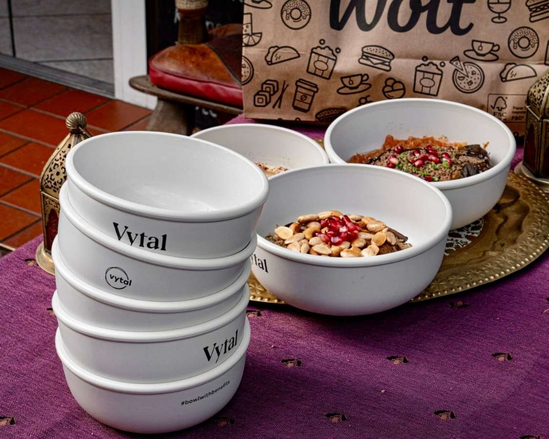 Du möchtest dein Essen umweltfreundlich mitnehmen? Wir arbeiten mit dem Mehrweg-System von Vytal: Du kannst dein Essen in wiederverwendbaren Schalen mitnehmen, ganz ohne Verpackungsmüll. Oder bring einfach deine eigene Box mit. Wir freuen uns, wenn du mitmachst.